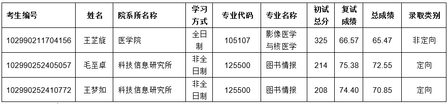 附:考生王芷旋等三人录取信息表